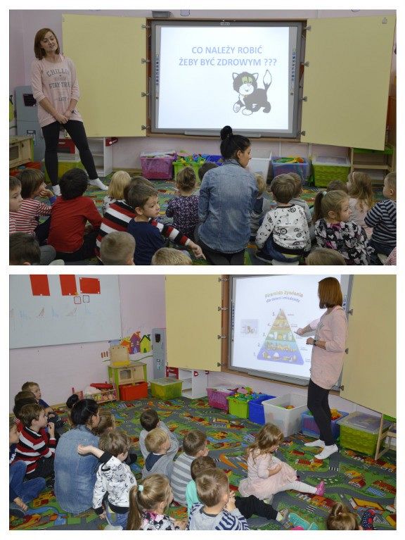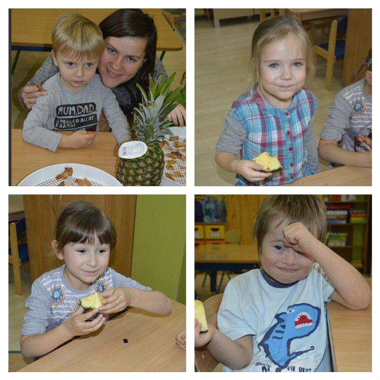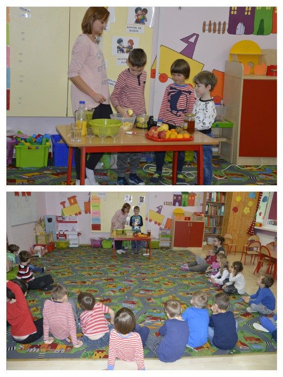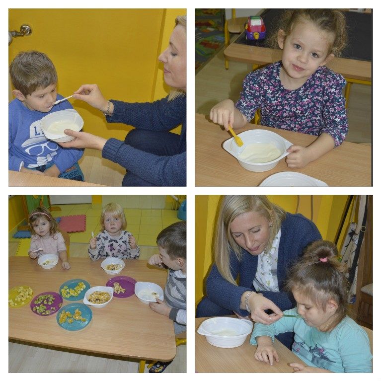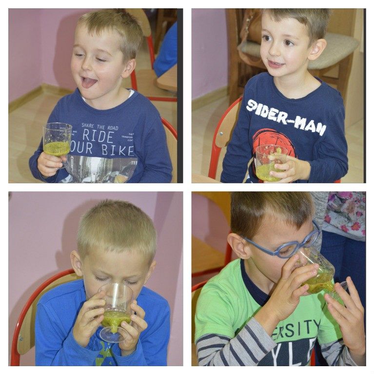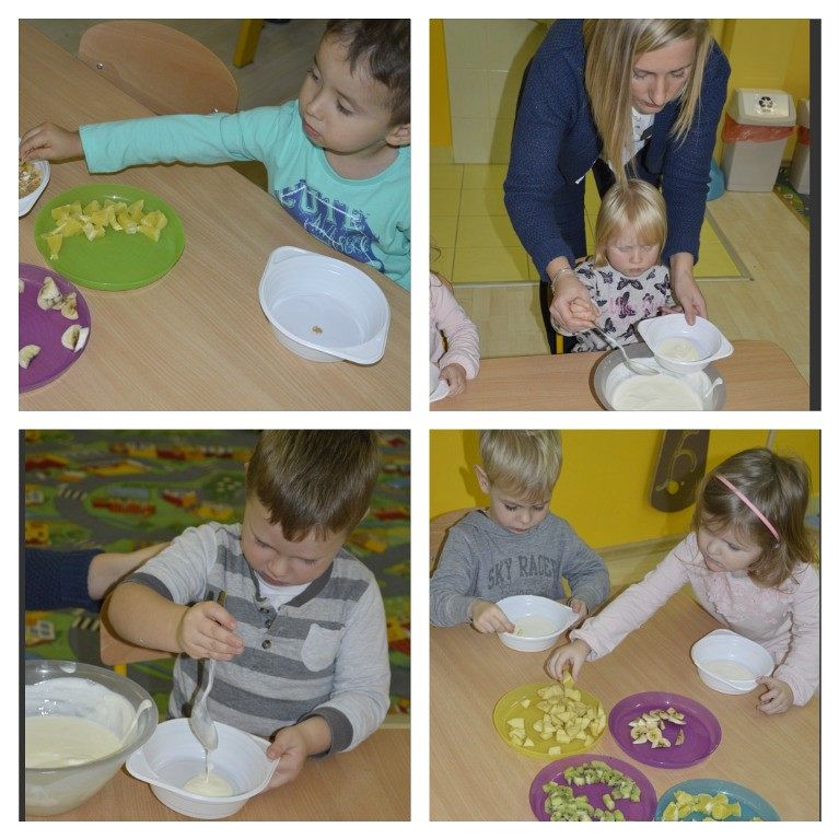 "Walka z otyłością- naszą przyszłością”- hasło to było tematem przewodnim dzisiejszego dnia, podczas którego obchodziliśmy Światowy Dzień Walki z Otyłością. Po śniadaniu wszystkie dzieci spotkały się na krótkiej pogadance z organizatorką tego święta, Panią Kasią. Dzięki przygotowanej prezentacji multimedialnej oraz bajce o „Chorym kotku”, przedszkolaki dowiedziały się, co robić, aby być zdrowym (nie tylko na ciele, ale i duchu) oraz nie chorować. W każdej z grup dzieci wspólnie z Paniami wykonały smakowite, zdrowe przekąski: maluszki- jogurt z owocami i musli, średniaki- suszone chipsy z jabłek, a starszaki- wraz z Panią Kasią- zielony koktajl. Wszystkie pyszności zniknęły w mgnieniu oka, a dzieci z chęcią sięgały po dokładki. Aby aktywnie zakończyć ten dzień pełen wrażeń, nasz spec od zdrowego odżywiania, poprowadziła dla wszystkich dzieci krótkie zajęcia Zumby. Mamy nadzieję, że dobre nawyki nabyte dzisiejszego dnia, pozostaną z dziećmi na co dzień