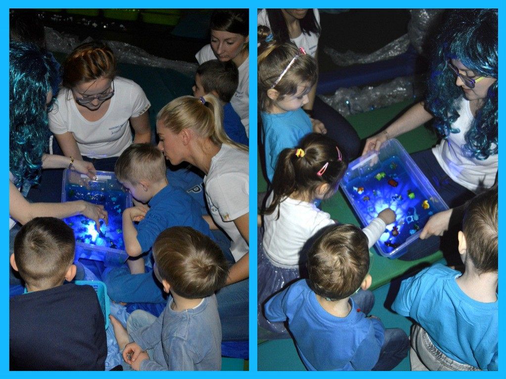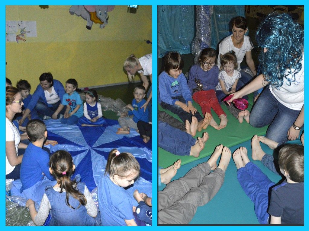 W poniedziałek 3 kwietnia obchodziliśmy w naszym przedszkolu Światowy Dzień Osób z Autyzmem. Solidaryzując się z osobami z zaburzeniami ze spektrum autyzmu i ich rodzinami, niebieskie były nie tylko korytarz, gazetki grupowe, czy Dziecięce Centrum Rehabilitacji, ale i nawet deserki w formie galaretki z bitą śmietaną, które dzieci w grupach otrzymały od wychowawczyń. W związku z obchodami tego tak ważnego dla nas dnia, panie terapeutki zaprosiły wszystkie przedszkolaki na zajęcia z elementami chromoterapii. Dzieci po raz pierwszy miały okazję zobaczyć, jak wyglądają grupowe zajęcia terapeutyczne dla dzieci ze specjalnymi potrzebami edukacyjnymi i przeniosły się w podwodny świat, cały zaczarowany kolorem niebieskim. A co działo się w podwodnym świecie, można zobaczyć w poniższej galerii. Na zajęciach terapii kolorami gościliśmy również Przedstawicieli Ośrodka Rehabilitacyjno-Edukacyjno-Wychowawczego w Mostach oraz Przedstawicielki Stowarzyszenia Niebiesaki Skarb.