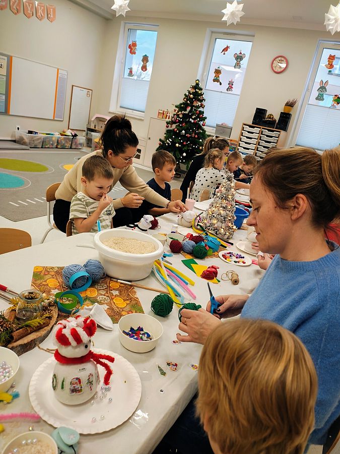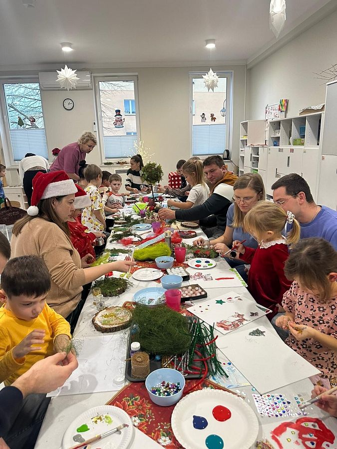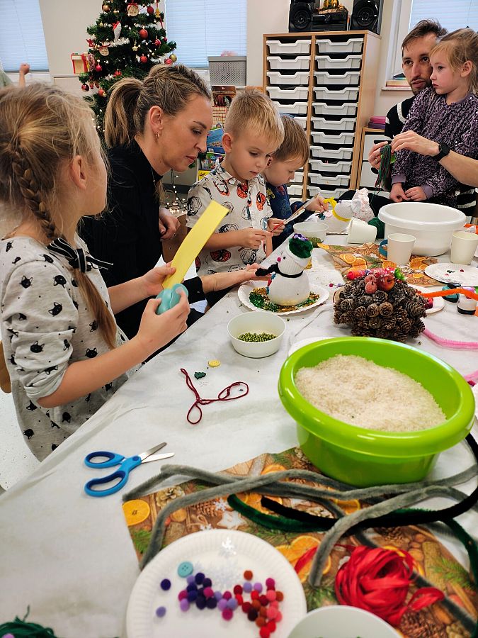 W grudniu przed świętami staramy się wprowadzić świąteczny nastrój min.Warsztatami rodzinnymi z tworzenia ozdób. Dzieci uczą się robić pierniczki, ozdoby na choinke, poznają tradycyjne Polskie zwyczaje podczas Świąt Bożego Narodzenia. Zapraszamy do galerii zdjęć.