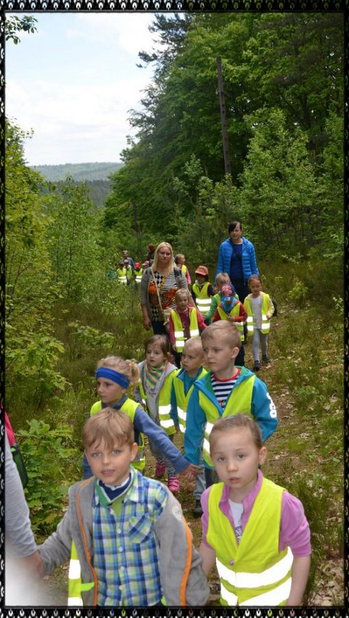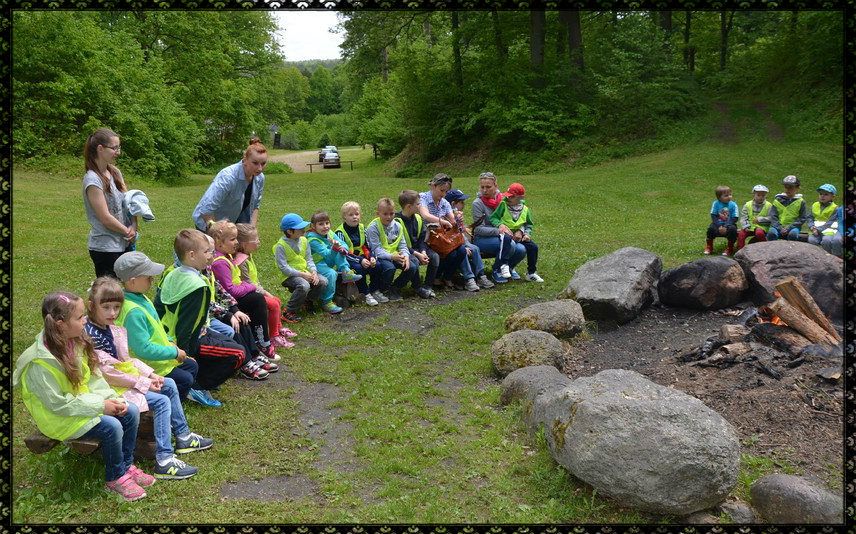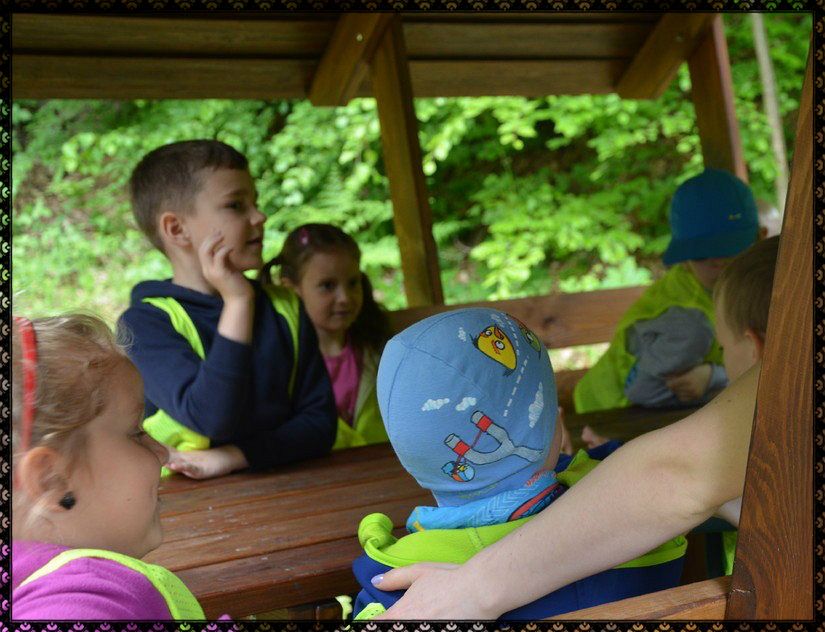 Z okazji Dnia Dziecka zorganizowaliśmy dla naszych przedszkolaków wycieczkę do Uroczyska Drętowo. Pogoda dopisała, udało się więc nam przejść całą edukacyjną ścieżkę z leśnikami. Pani oprowadzająca nas, opowiadała ciekawostki o lesie, pokazywała jak rozpoznać dany gatunek drzew, jak policzyć ile świerk ma lat...