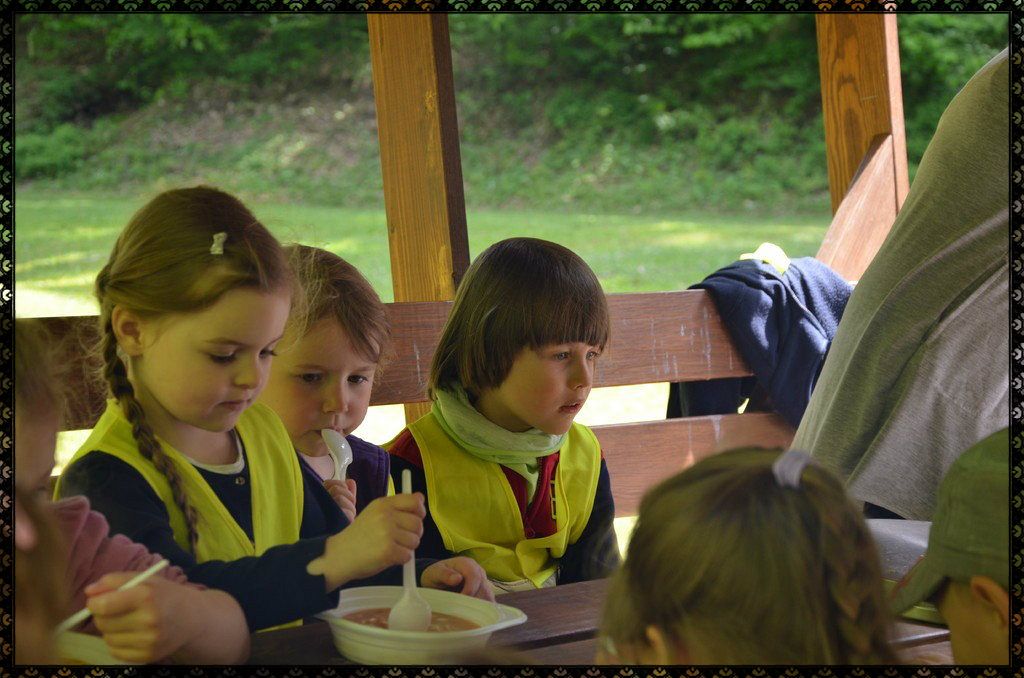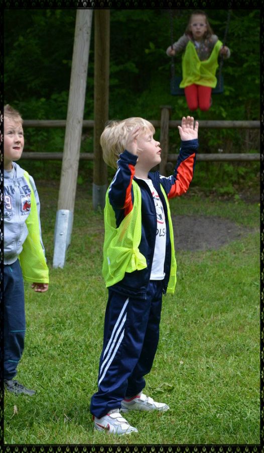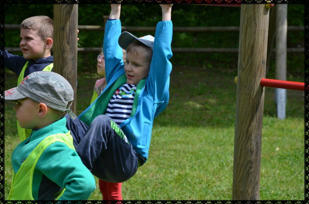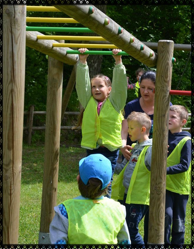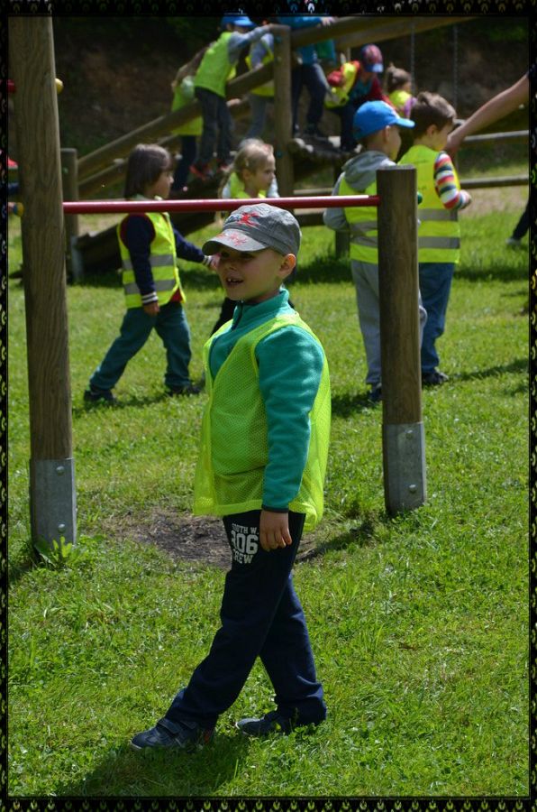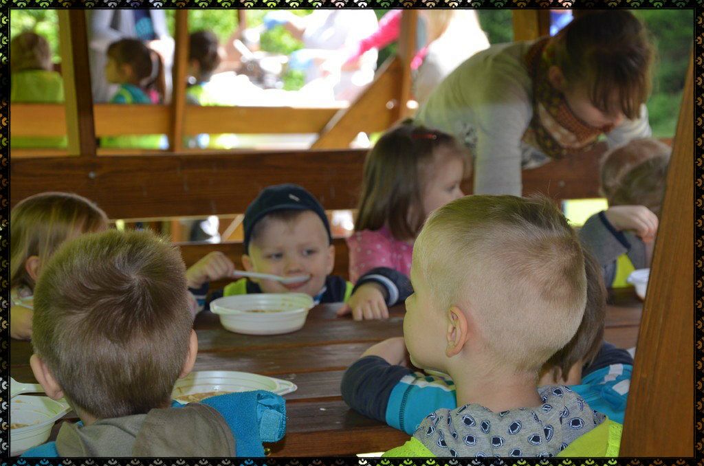 Mimo tego, że raz szliśmy pod górę, raz w dół, że nie było łatwo wejść po tyyyylu schodach w górę, że świeciło piękne czerwcowe słonko prosto w nasze zmęczone buzie...przeszliśmy ścieżkę z uśmiechem i dobrym humorem. Po wysiłku nadszedł czas na pyszna pomidorową z makaronem, a potem...na wesołą zabawę na świeżym powietrzu.