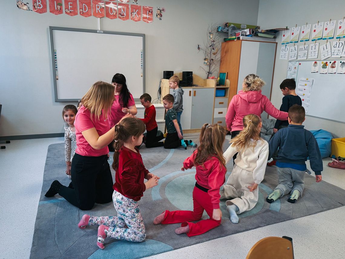 Z okazji Dnia Przytulania nauczycielki przygotowały dla dzieci zajęcia z Metody Weroniki Sherborne.