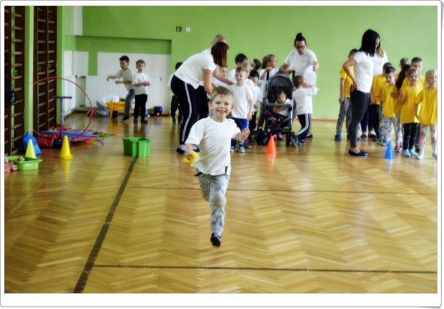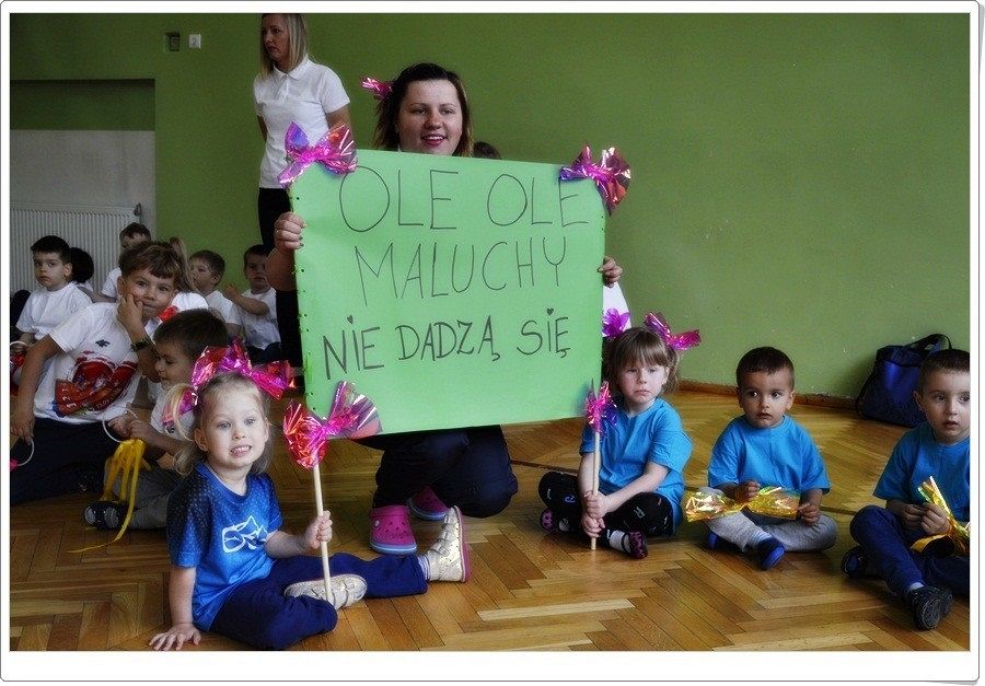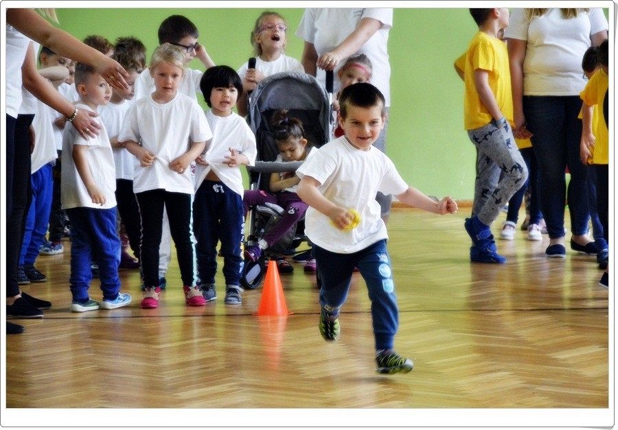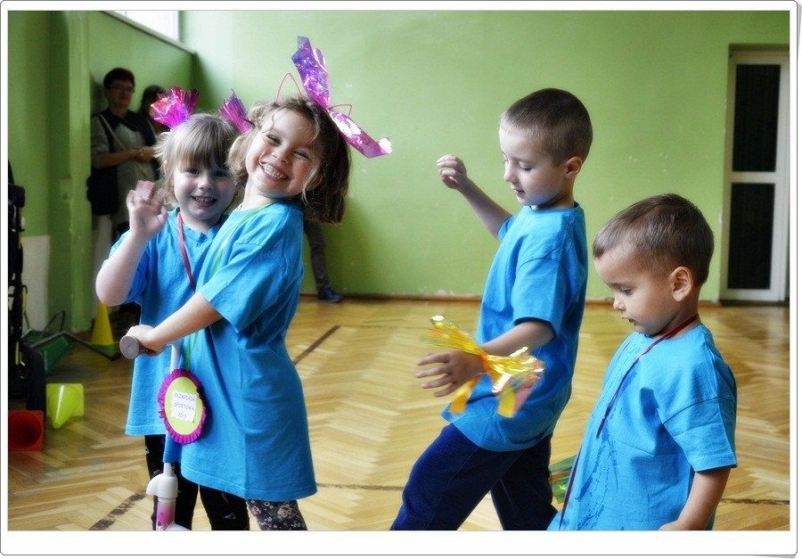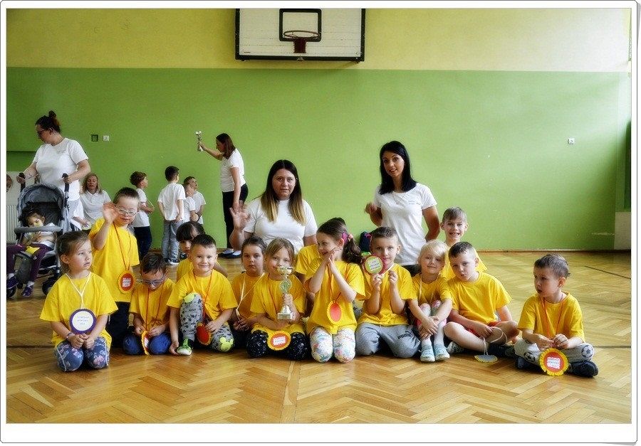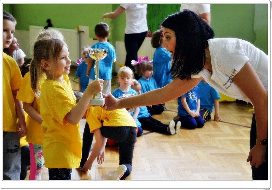 W tym roku przedszkolaki głośno prezentowały sportowe hasła i przewodnią piosenkę „jesteśmy razem, wesoło gramy i wszyscy radość w sercach mamy”. Dzieci też z zaangażowaniem brały udział w przygotowanych konkurencjach. Każde prawidłowo wykonane ćwiczenie budziło w przedszkolakach ogromną radość ,a przygotowane puchary dla każdej grupy miło wszystkich zaskoczyły. Na zakończenie dnia wszystkie dzieci w nagrodę za zaangażowanie podczas ćwiczeń sportowych dostały od swoich nauczycielek piłki. Dziękujemy rodzicom za kupno pizzy-niespodzianki, dzięki temu mogliśmy nadrobić stracone kalorie:)
