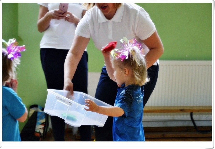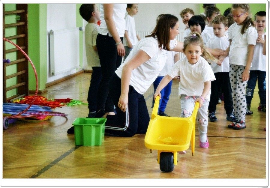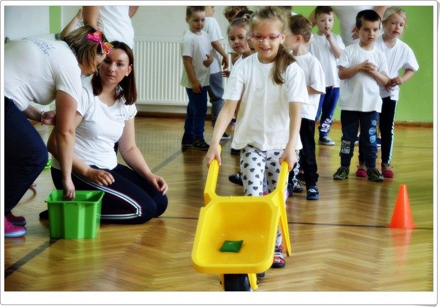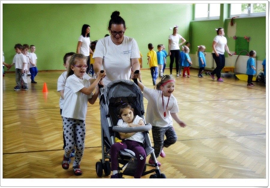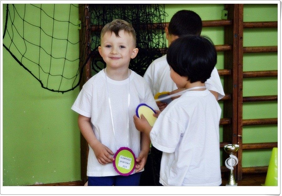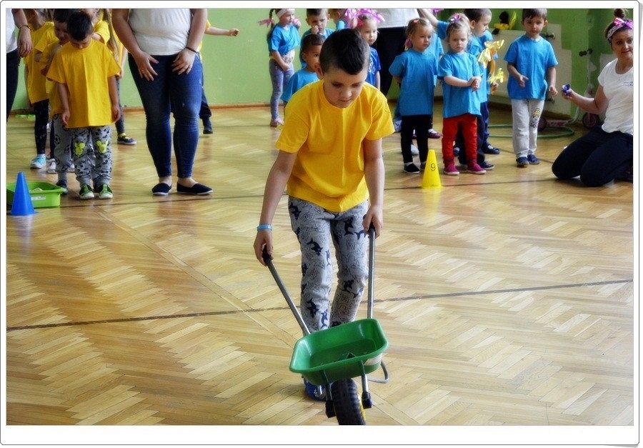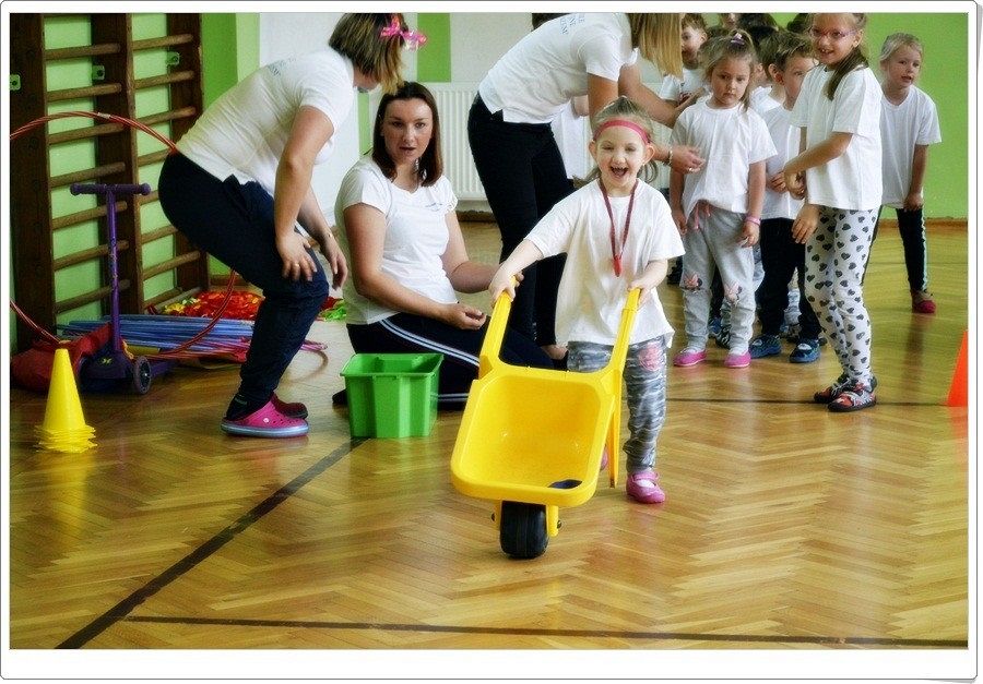 W tym roku przedszkolaki głośno prezentowały sportowe hasła i przewodnią piosenkę „jesteśmy razem, wesoło gramy i wszyscy radość w sercach mamy”. Dzieci też z zaangażowaniem brały udział w przygotowanych konkurencjach. Każde prawidłowo wykonane ćwiczenie budziło w przedszkolakach ogromną radość ,a przygotowane puchary dla każdej grupy miło wszystkich zaskoczyły. Na zakończenie dnia wszystkie dzieci w nagrodę za zaangażowanie podczas ćwiczeń sportowych dostały od swoich nauczycielek piłki. Dziękujemy rodzicom za kupno pizzy-niespodzianki, dzięki temu mogliśmy nadrobić stracone kalorie:)