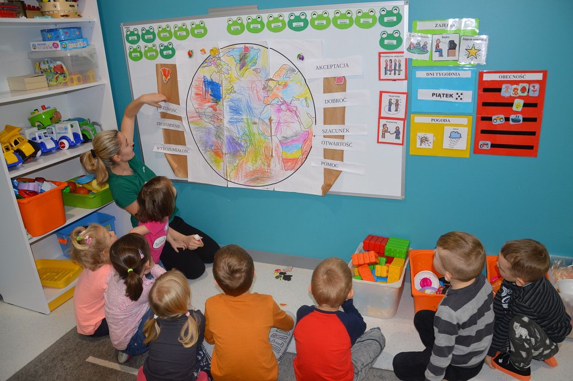 W naszym przedszkolu obchodziliśmy dzisiaj Międzynarodowy Dzień Tolerancji oraz Praw Dziecka. W każdej grupie odbyły się zajęcia uświadamiające dzieci, co oznacza tolerancja i szacunek dla innych. Dzieci miały okazję oglądać teatrzyk oraz czynnie brać w nim udział, opowiadający o bohaterskim kurczaczku, który nie był akceptowany przez innych. Po przedstawieniu, pani psycholog przeprowadziła z dziećmi pogadankę, która miała na celu kształtowanie u dzieci prawidłowych postaw społecznych, a w szczególności akceptacji odmienności oraz uwrażliwienie na uczucia innych.