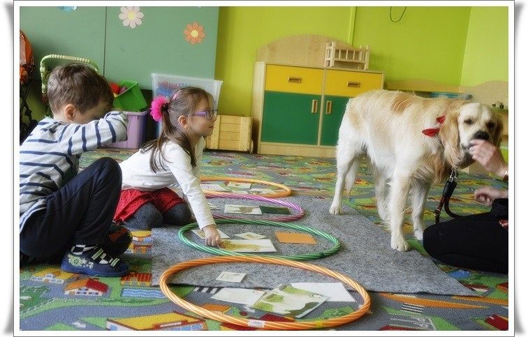Edukacja z udziałem psa czyli AAE to dodatkowa metoda wspomagająca proces edukacji, w której pies występuje jako motywator do podejmowania działań przez uczestników. Na dzisiejszych zajęciach Niko motywował do działania dzieci z grupy średniej, zapraszamy do galerii.