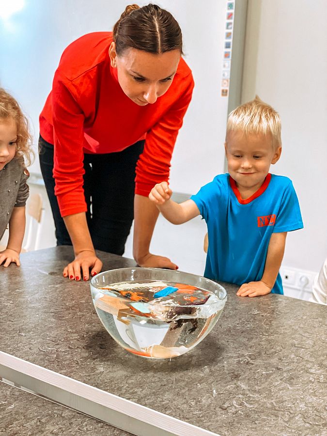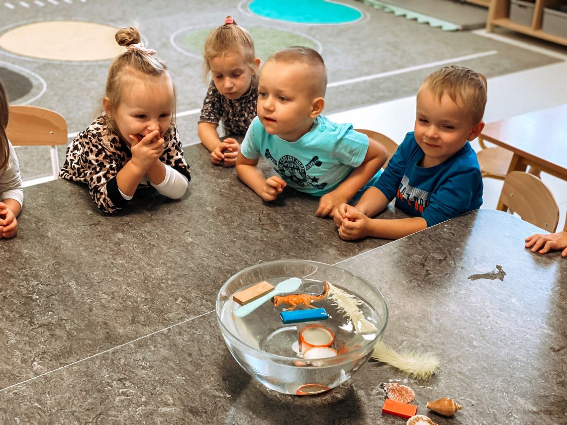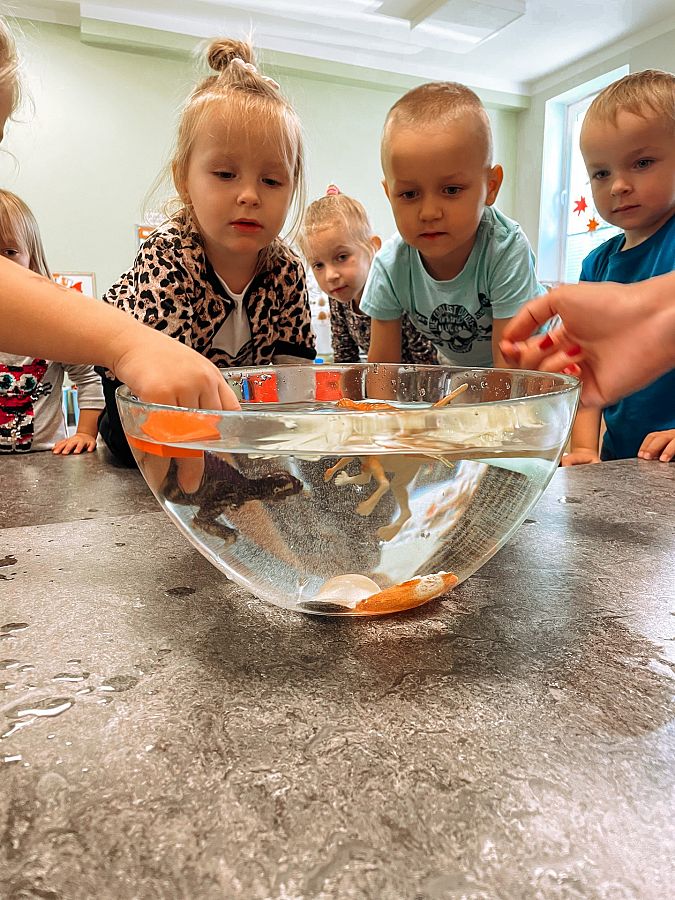 Krasnoludki bardzo lubią odkrywać świat i robić różne doświadczenia, a w tym tygodniu eksperymentowali z wodą. Sprawdzali co pływa, a co tonie, barwili wodę barwnikami i obserwowali jak się zmienia pod ich wpływem. Dzieci były bardzo zaciekawione tym nowym doświadczeniem.