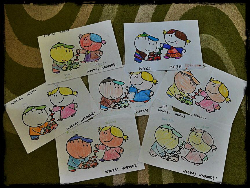 Gulmon? Grześ? A może Alan? Gućka? Jadwisia? Lukrecja?...W piątek obchodziliśmy Dzień Przedszkolaka w naszej placówce. Na korytarzu zawisła piękna gazetka a dzieci dostały zadanie - pokolorować i nadać imię chłopcu i dziewczynce - przedszkolaczkom. Dzieci wykonały dzielnie zadanie i w poniedziałek przyniosły piękne prace. Stworzyliśmy listę imion dla chłopca i dziewczynki. Od dziś w przedszkolu trwa głosowanie - od rodziców i dzieci zależy, jakie imiona dostaną nasze maskotki - przedszkolaki. Dla zwycięzców (czyli dzieci, które wymyśliły dane imię) czekają nagrody. Niespodzianki przygotowaliśmy też dla dzieci, które pięknie pokolorowały obrazki. Rozwiązanie konkursu 30 września.