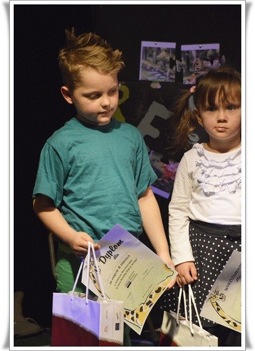 Od wielu lat dzieci z kółka recytatorskiego biorą w nim udział. W tym roku nasze przedszkole reprezentował Jan Cieszyński i Paweł Ramczyk z grupy starszaków. Chłopcy przygotowywali się bardzo wytrwale co zauważyło szanowne jury nagradzając dzieci miejscami na podium. Pierwsze miejsce zajął Pawełek, który przedstawił wiersz pt. „O Panu Tralalińskim”, chłopiec zaskoczył wszystkich swoją odwagą (wystąpił pomimo złamanej nogi), zaangażowaniem, piękna interpretacją i nienaganną dykcją. Drugie miejsce zajął Janek, którego występ bardzo zaintrygował publiczność, chłopiec przedstawił wiersz pt. „Smok”.