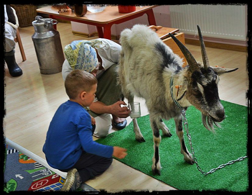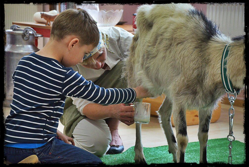Dziś w naszym przedszkolu gościliśmy niezwykłą kozę podróżniczkę (ze wsi Lipy) o imieniu Magda. Odwiedziła nas razem ze swoimi gospodarzami, którzy pokazali nam nie tylko jak się kozę doi, ale także co z wydojonego mleka można zrobić. Przedszkolaki dzielnie uczestniczyły w produkcji twarożku, maślanki i mleka. Dobrze się przy tym bawiliśmy!! Zapraszamy do galerii zdjęć.