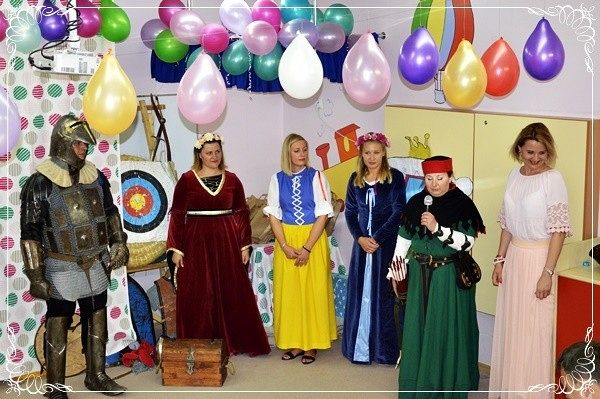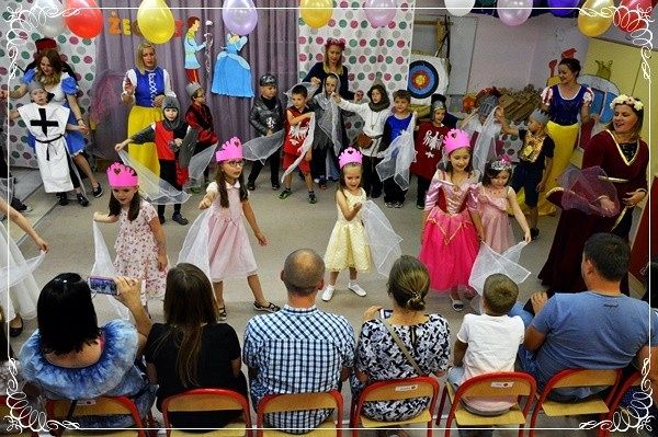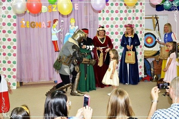 Za górami za lasami, w pięknej krainie dobroci, kreatywności i szczęścia zebrali się wielmożni rodzice, z kwiatami, elegancko ubrani, uśmiechnięci...w skupieniu oczekiwali na najważniejsze osoby -swoje księżniczki i swoich rycerzy. Dzieci otrzymały dyplomy, książki i pamiątkowe albumy. Po części artystycznej znalazł się czas na wspólne zdjęcia, ciekawe rozmowy z naszymi wspaniałymi gośćmi. Następnego dnia bawiliśmy się wspólnie ze wszystkimi dziećmi nie tylko z tymi najstarszymi na pikniku rodzinnym, który tradycyjnie został zorganizowany przed przedszkolem i tradycyjnie dopisała nam piękna pogoda.