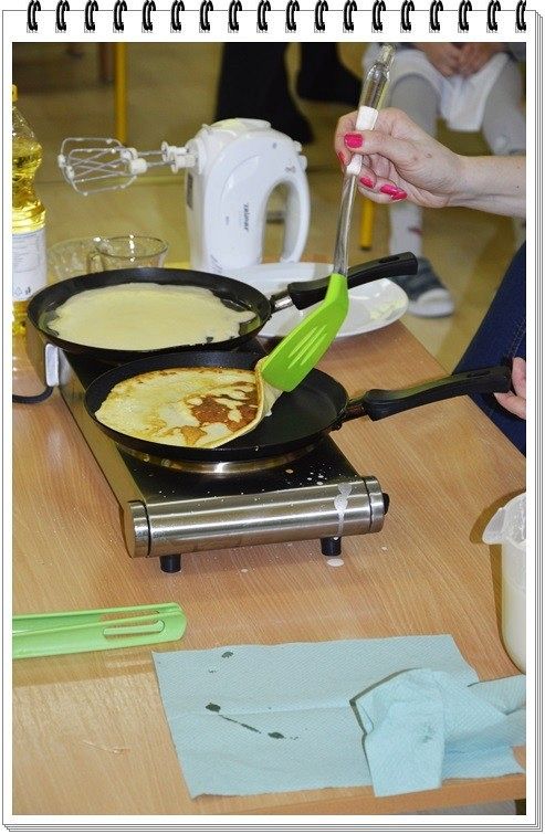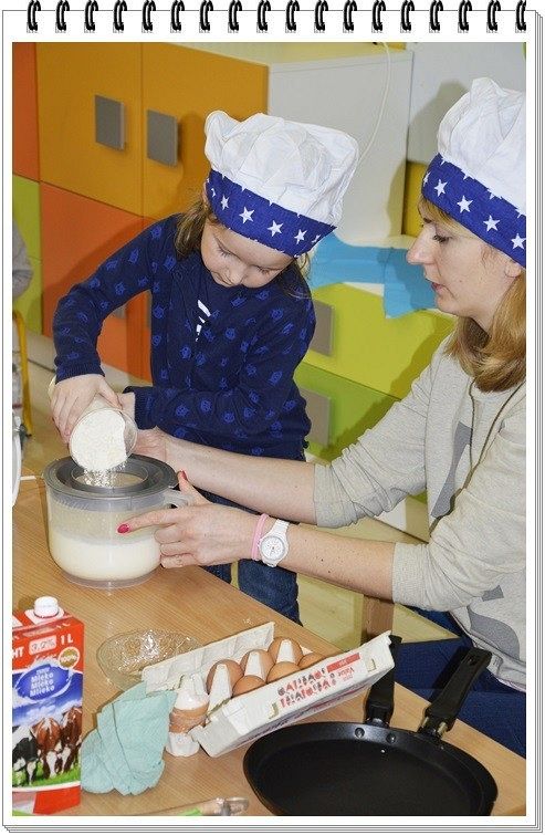 24.02.2016 w przedszkolu zajęcia zaczęły się od grupowych ćwiczeń logopedycznych z Panią Sandrą Radomską, oczywiście przedszkolaki były bardzo zaangażowane w gimnastykę języka i buzi dlatego też szybko zgłodniały….. Pani Natalia Makurat i Pani Ewelina Urbańczyk szybko temu zaradziły i zaprosiły dzieci na kuchenne rewolucje do sali żółtej. Jak to jest własnoręcznie przygotować posiłek? umiejętnie dodać i wymieszać wszystkie składniki? Nasze przedszkolaki już wiedzą. Sala maluszków zamieniła się w prawdziwą kuchnię, a dzieci w kucharzy. Naleśniki które przygotowały przedszkolaki były pyszne. Jak nam mija ósmy dzień ferii w przedszkolu??? WYŚMIENICIE!