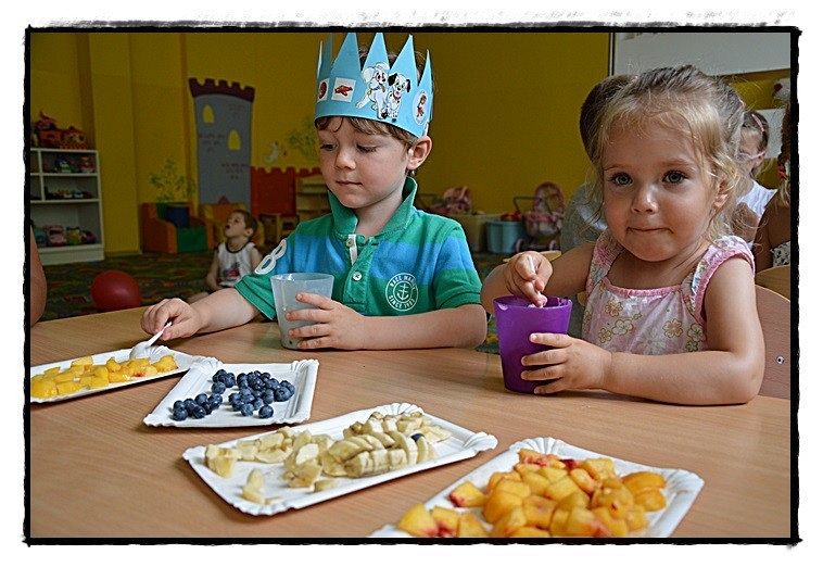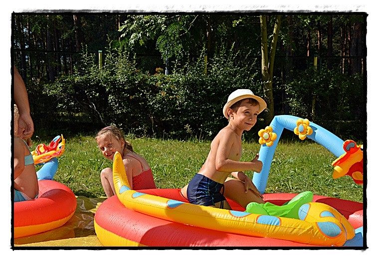 Podobnie jak w zeszłym roku sierpień spędzamy bardzo aktywnie. Panie pracujące w przedszkolu wróciły po urlopie wypoczęte i pełne zapału do dalszej pracy. Dzieci biorą udział w rozmaitych zabawach i grach. Upały nam niegroźne, ponieważ doskonale wiemy jak temu zaradzić. W tym tygodniu dzieci ochłodziły się w naszym ogrodzie w specjalnie przygotowanych basenach wypełnionych wodą, a następnie jadły lody z owocami, które same nakładały do kubeczków. Nasz kolega Antoś obchodził 4 urodziny więc jego koledzy i koleżanki głośno zaśpiewały 100 lat.