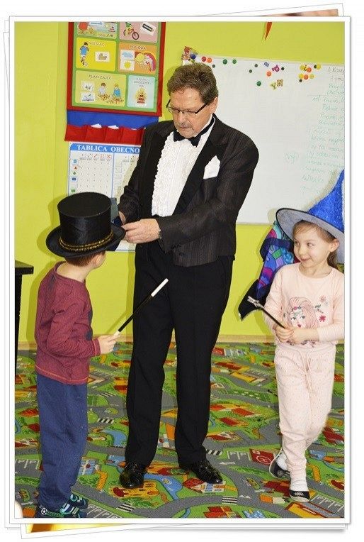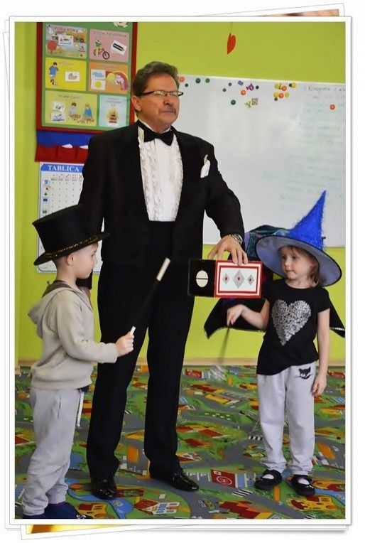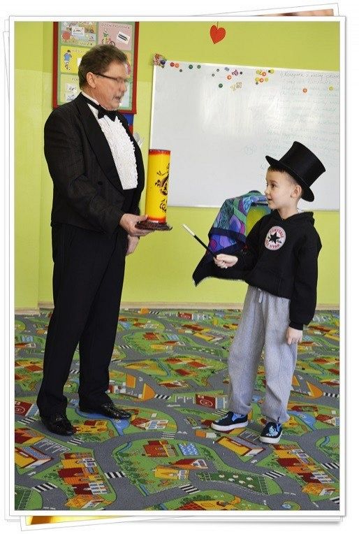 23.02.2016 przy pomocy profesjonalnych rekwizytów, żywych zwierząt obył się pełen niecodziennych wrażeń występ naszego gościa specjalnego. Pan iluzjonista przygotował niezwykły pokaz pobudzający dziecięcą wyobraźnię. Wszystkim przedszkolakom bardzo podobały się sztuczki i czary. Niektóre z nich choć na chwilę same mogły zamienić się w małych czarodziejów. Przez całe przedstawienie na buziach widzów malował się uśmiech, po czym stwierdzić można, że występ był udany i trafiony w dziesiątkę. Ten dzień pozostanie w pamięci naszych przedszkolaków na bardzo długi czas.