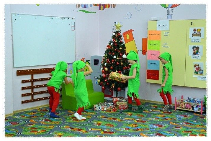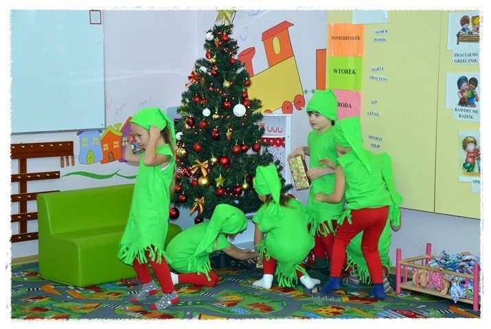 04.12.2015 roku obchodziliśmy Mikołajki. Uroczystość rozpoczęła grupa teatralna, która przygotowała piękny musical bożonarodzeniowy pt. „Bajka Wesołego Mikołajka”. Następnie przyjechał do nas Mikołaj, tym razem nie na saniach z zaprzęgiem reniferów, tylko …… motorem;). Dzieci obiecały, że będą przez cały grudzień bardzo, bardzo grzeczne, śpiewały piosenki, mówiły wiersze więc Mikołaj po krótkim namyśle powiedział, że w szatni czekają ….prezenty!