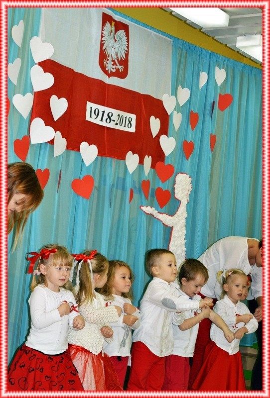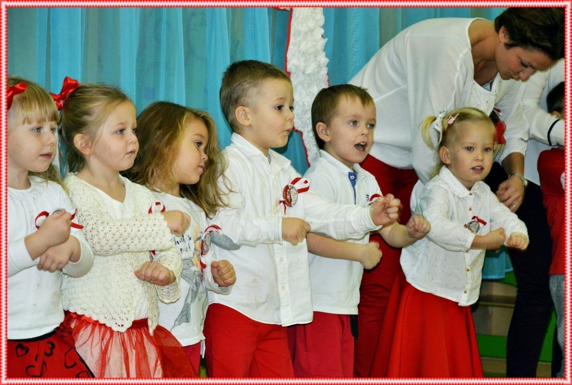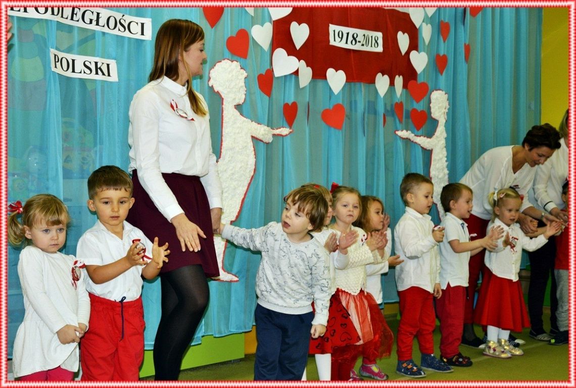 9.11.2018r uczniowie i kadra Przedszkola Integracyjnego "Jesteśmy Razem" uroczyście uczcili 100 lecie Niepodległej Polski. Z tej okazji mama Wiktora z grupy maluszków upiekła nam pyszne ptasie mleczko, a grupa najmłodszych patriotów wystąpiła w przedstawieniu specjalnie przygotowanym na ten dzień. Tradycyjnie jak co roku zaśpiewaliśmy hymn.... wszystkie zwrotki! Nasi uczniowie z ogromnym zaangażowaniem, słowem i piosenką oddali szacunek symbolom narodowym . Dziękujemy wszystkim nauczycielom i rodzicom za pomoc w przygotowaniu święta nas wszystkich.