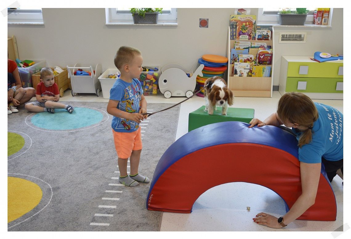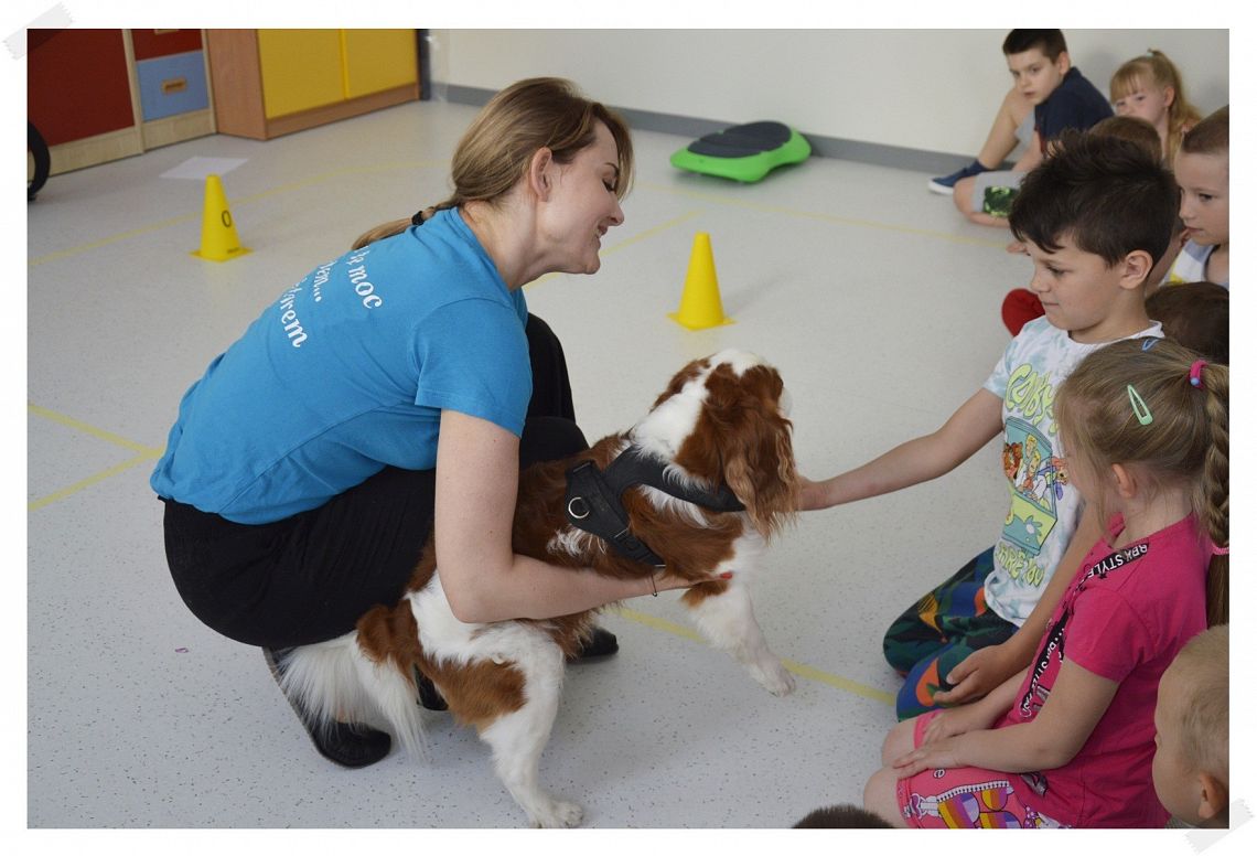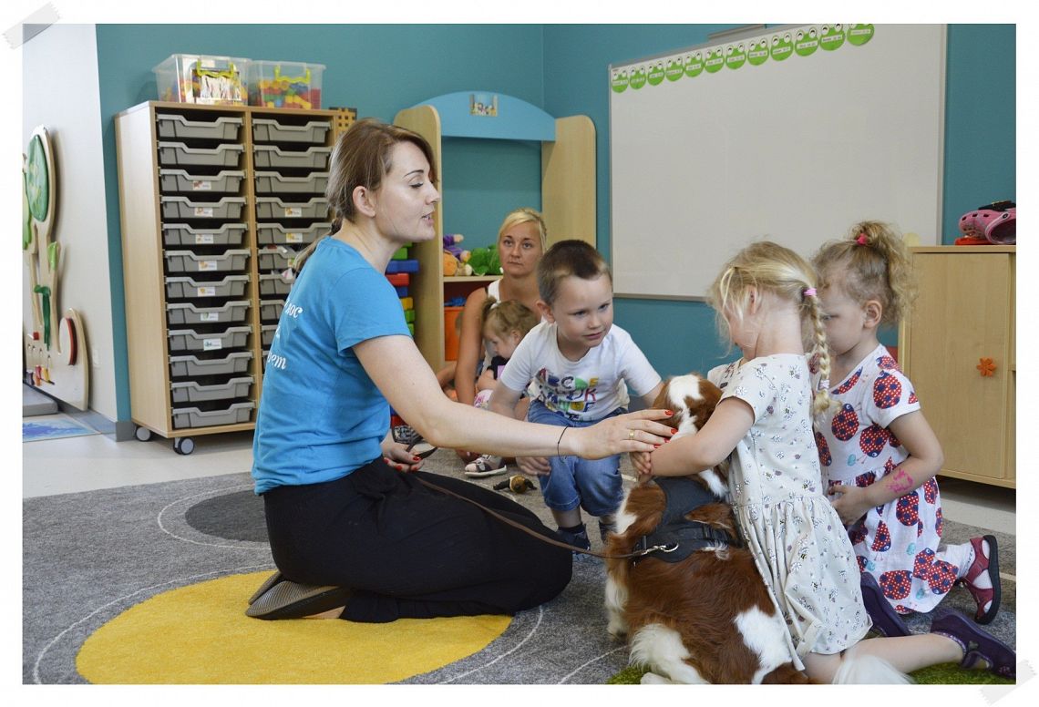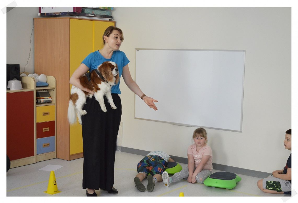 Zajęcia miały na celu stworzenie pozytywnego kontaktu pomiędzy dziećmi, a psem. Zefir okazał się prawdziwym przyjacielem dzieci. Dowiedzieliśmy się min. co zrobić by zwierzę było z nami szczęśliwe, jakie jeszcze inne rasy psów możemy spotkać, co zrobić jeżeli widzimy psa bez właściciela . Wykonaliśmy również kilka sztuczek i zabaw które pokazał nam Zefir. Bardzo ciekawy początek tygodnia.