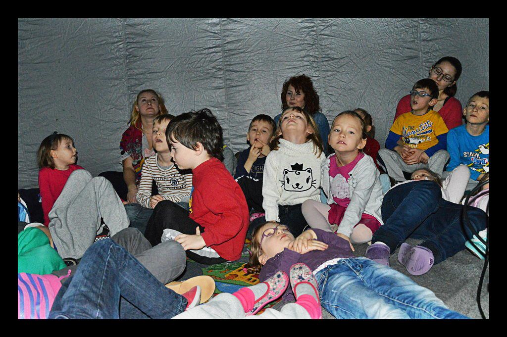 W minioną środę, 21 stycznia, sala starszaków zamieniła się w wieeeeelkie planetarium. Pani Kamila - nasz gość z południa Polski, najpierw opowiedziała nam, czym są planety, gwiazdy, teleskopy - a następnie zaprosiła chętne dzieci do oglądania gwiazd w specjalnie przygotowanej kopule.