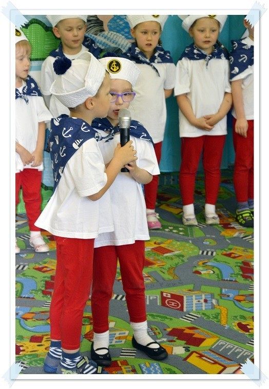 W środę grupa średniaków zaprosiła rodziców na rejs wesołym statkem. Dekoracja sali, stroje dzieci, pań i rodziców wprowadziły wszystkich w miły wakacyjny nastrój. Mali marynarze występowali z ogromnym zaangażowaniem za co zostali nagrodzeni gromiki brawami i dużą, dużą ilością buziaków od wzruszonych rodziców. Dzieci do występu przygotowała wychowawczyni grupy Pani Kasia, nauczyciel oligofrenopedagog Pani Wioleta, oraz opiekunka Pani Asia.
