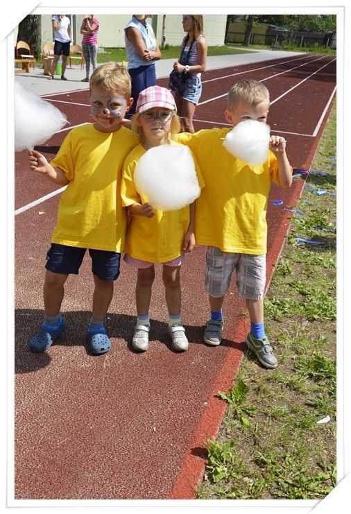 Dziś o godzinie 10.00 odbyło się uroczyste zakończenie roku przedszkolnego. Było wyjątkowo, radośnie i rodzinnie. Po przemówieniu Pani Dyrektor dzieci wystąpiły przed Rodzicami w krótkim występie artystycznym, następnie rozpoczęły się konkurencje sportowe podczas których każdy przedszkolak bardzo się starał. Rodzice rónież wzięli udział w konkurencji sportowej. Po wesołym kibicowaniu i sportowych konkurencjach dzieci otrzymały dyplomy, medale i prezenty. Były wspólne zdjęcia, słodki poczęstunek, gość specjalny, malowanie twarzy, kolorowe balony, wata cukrowa, dmuchane zamki - czyli wszystko to co dzieci lubią najbardziej.
