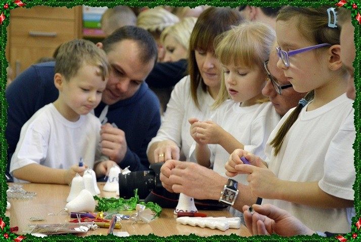 W poniedziałek 14.12. panie nauczycielki i dzieci zaprosiły rodziców średniaczków na wspólne kolędowanie i wykonanie świątecznych ozdób choinkowych. Pani Kasia, Pani Wioleta i Pani Aleksandra przygotowały dzieci do występu w którym nie zabrakło piosenek świątecznych, tańców i wierszy, które dzieci wykonały jak zawodowcy- głośno, wyraźnie i z dużym usmiechem na twarzach. Potem były upominki i wspólne wykonanie ozdób.