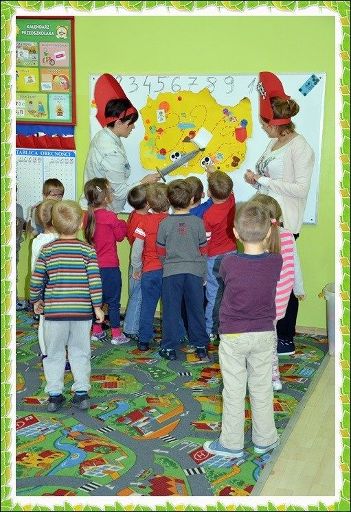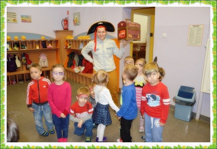 5 listopada w naszym przedszkolu odbył się Światowy Dzień Postaci z Bajek. Dla naszych przedszkolaków był to wyjątkowy czwartek, nieco magiczny, tajemniczy, pobudzający dziecięcą wyobraźnię…..Grupa starszaków przeniosła się w czasie do pięknego zamku w którym żyją księżniczki i królewicze. Dzięki ich bogatej wyobraźni w zamku nawet znalazł się smok ziejący ogniem;). Grupa średniaczków zamieniła się w piratów i wraz ze swoim kapitanem Panią Kasią szukała ukrytego skarbu. Grupa maluszków bardzo lubi bajki w których główną postacią są wesołe, puchate misie, dlatego w tej grupie nie mogło dziś zabraknąć ….. dużego misia;)