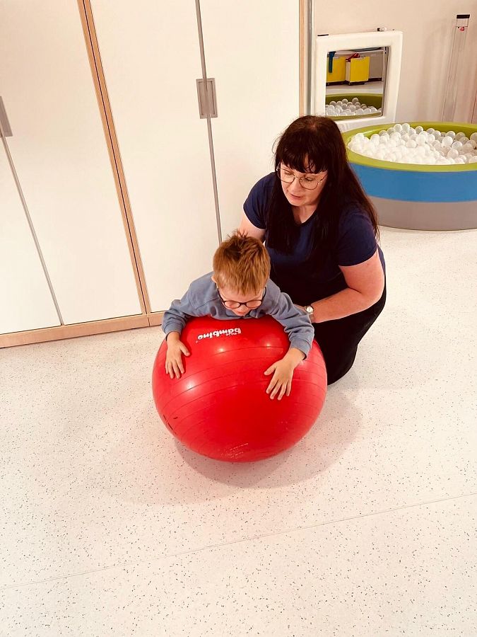 Rehabilitacja ruchowa dzieci to proces, który zmierza do poprawy kondycji i sprawności fizycznej małego pacjenta. Jej celem głównym jest kompensowanie albo odtworzenie funkcji utraconych lub niewykształconych. Działania dążą do uzyskania optymalnych efektów, czyli maksymalnie możliwej sprawności fizycznej, co przekłada się na jakość życia. Rehabilitacja ruchowa w naszym przedszkolu prowadzona jest indywidualnie lub w czasie ćwiczeń korekcyjno-kompensacyjnych - w grupie. Podczas zajęć wykorzystuje metody pracy takie jak: - Integracja odruchów posturalnych i dynamicznych wg dr S. Masgutowej - Terapię taktylná wg dr S.Masgutowej - Integrację odruchów wzrokowo słuchowych wg dr S. Masgutowej - Orginal Play - zabawę pierwotna F. Donaldsona - Kinesio Taping - plastrowanie itd.