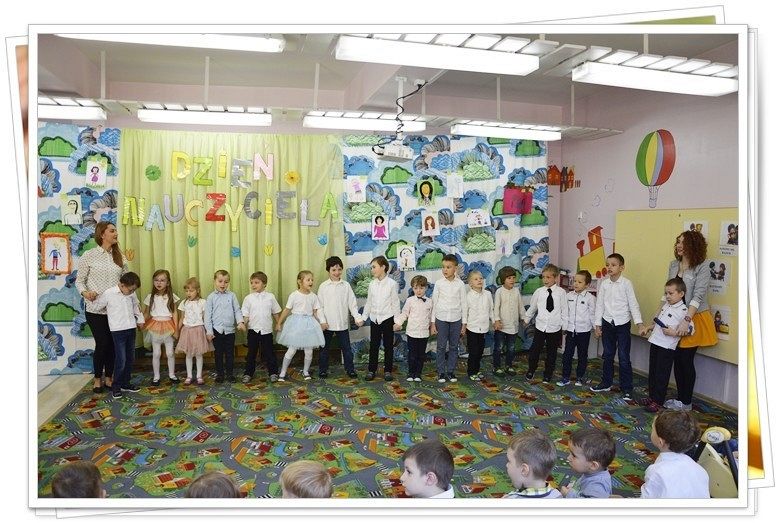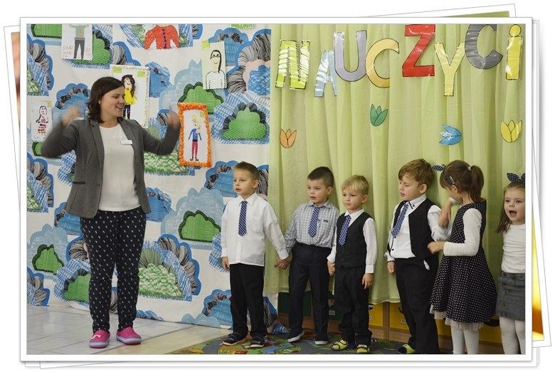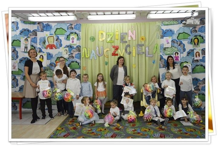 14 października – to święto wszystkich pracowników oświaty. Także w naszym przedszkolu ten dzień jest obchodzony bardzo uroczyście. Wszystkie dzieci zaśpiewały nam 100 lat, a grupa starszaków i średniaków przygotowała piękną niespodziankę - program artystyczny. Dzieci śpiewały , mówiły wiersze i w imieniu wszystkich dzieci złożyły swoim wychowawczyniom i całemu personelowi placówki serdeczne życzenia wytrwałości i życzliwości.