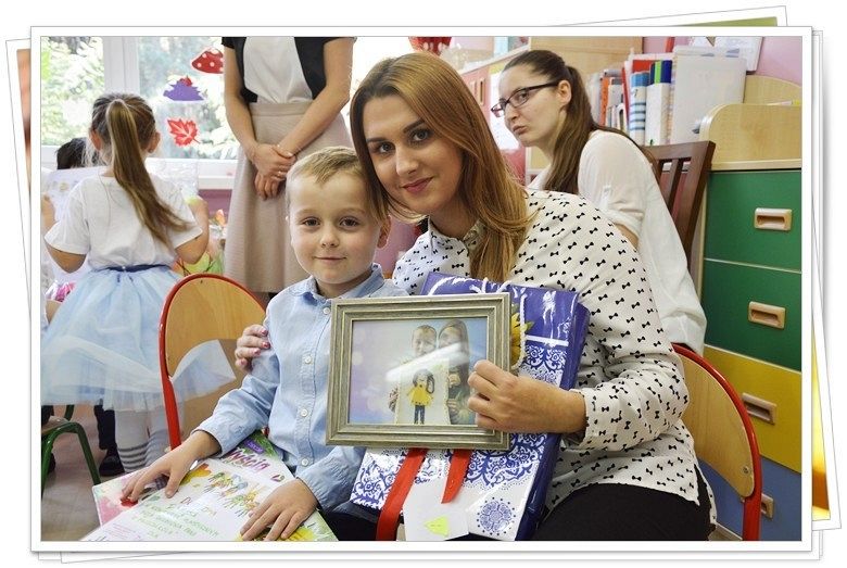 Po przedstawieniu i życzeniach, nastąpiło uroczyste wręczenie nagród dzieciom biorącym udział w konkursie, w którym należało narysować portret ulubionej Pani z naszego przedszkola. Dzieci wykonały portrety starannie i widać było, że chciały swoją ukochaną panią przedstawić jak najdokładniej i jak najlepiej potrafią, dlatego nie było przegranych, każdy przedszkolak który wziął udział w konkursie otrzymał niespodziankę za zaangażowanie.