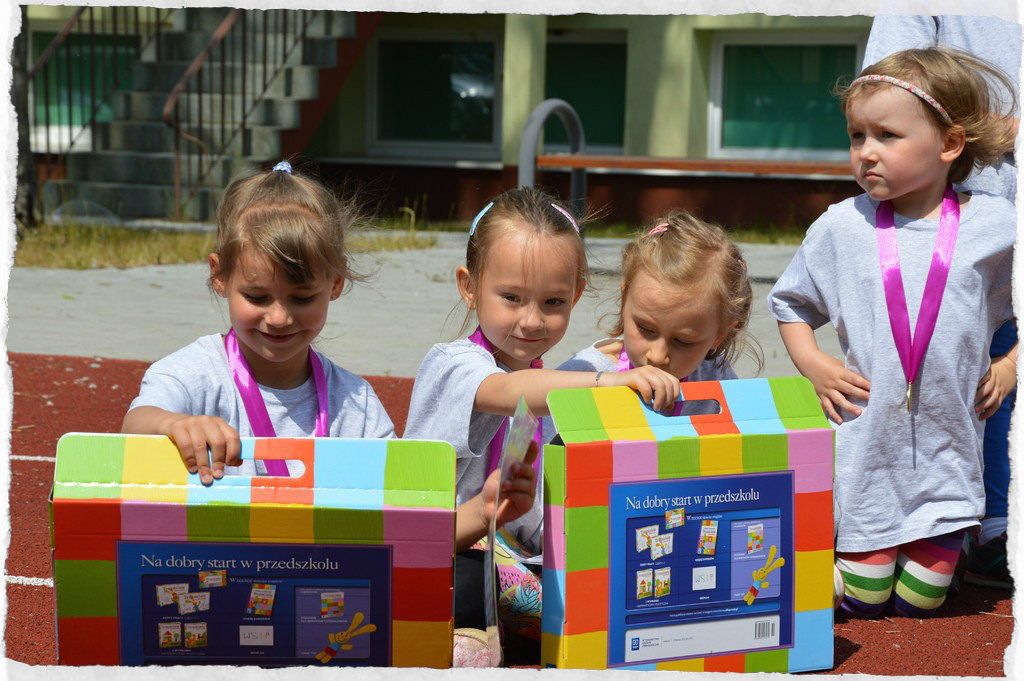 W poniedziałek, po zawodach sportowych, panie z grupy średniaków uroczyście wręczyły swoim dzieciom dyplomy i podziękowania za rok przedszkolny, który niebawem się skończy. Dzieci dostały także teczki z pracami wykonywanymi przez cały rok.