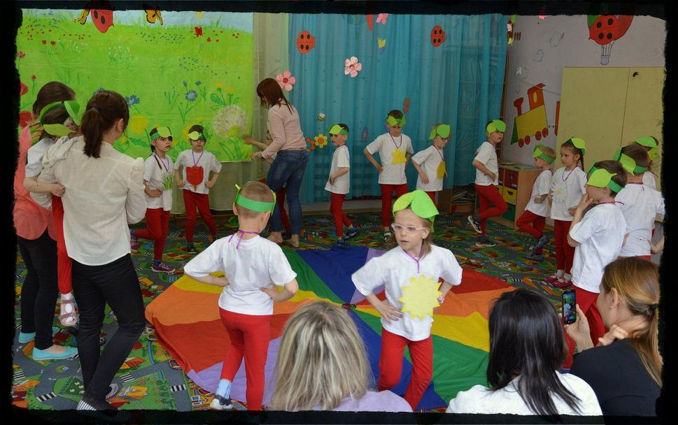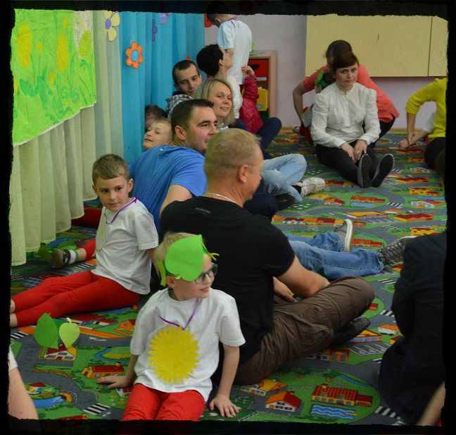 Zaproszone mamy i tatusiowie mieli możliwość posłuchania występu swoich dzieci a potem uczestniczenia w zajęciach - trochę relaksacyjnych- to znów plastycznych. Było wycinanie, wyklejanie, chowanie się pod chustą Klanzy i masażyki.