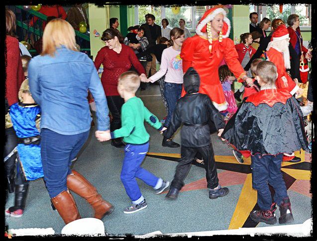 Julia, Kinga, Jędrek z siostrą, Szymon, Marcel, Klara, dwóch Kacperków, Antosia, Mateusz z bratem, Robert - wszyscy bawili się wesoło z rodzicami i prowadzącymi skrzatami. Na koniec dzieci dostały paczki z niespodziankami. Zabawa była udana!! Na piątkę z plusem :)