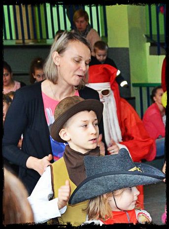 Dzisiaj przed południem sala forum SPnr5 wypełniła się gośćmi - przebranymi za ksieżniczki, rycerzy, Mikołaja, motylki i wiele innych.