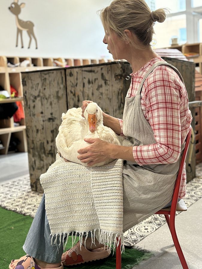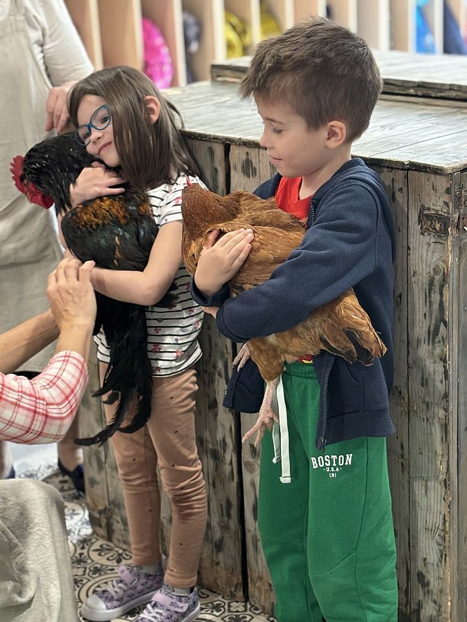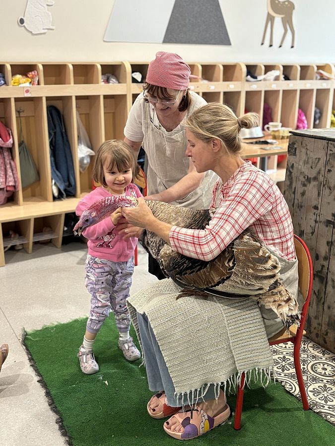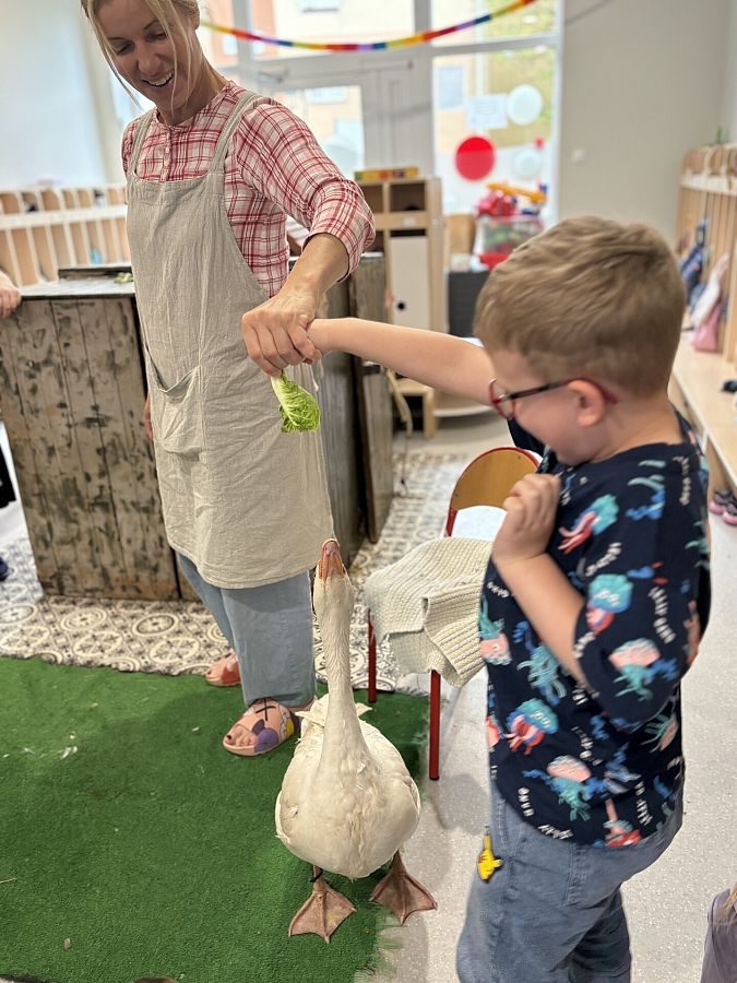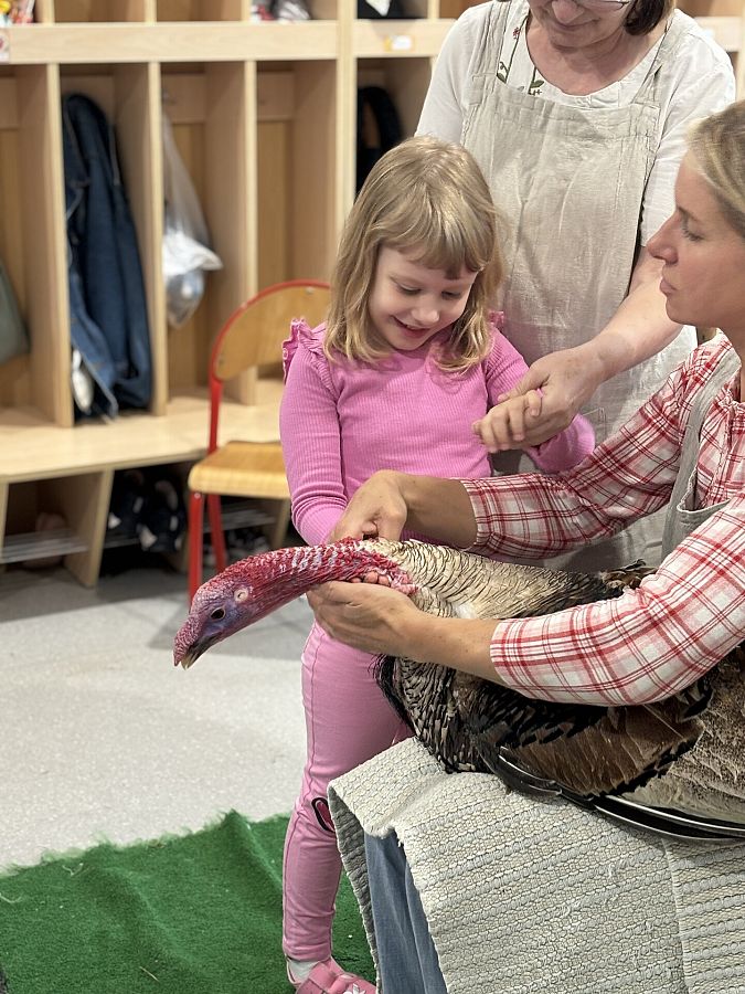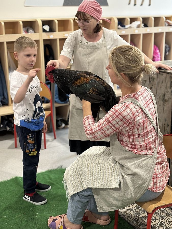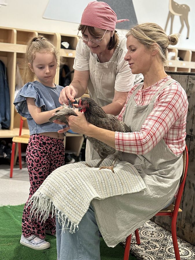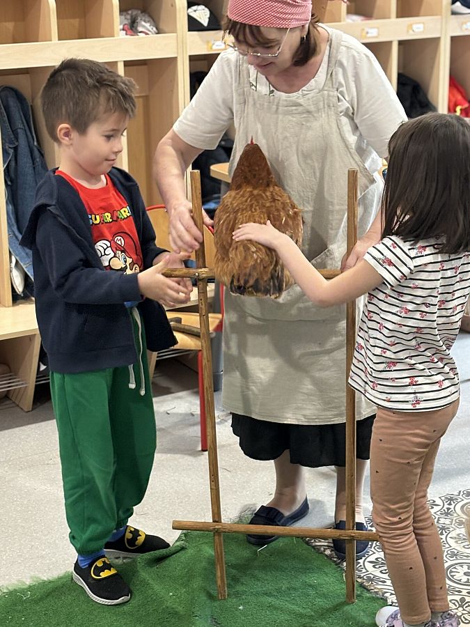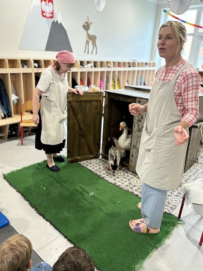 Nasze przedszkole odwiedzili goście z gospodarstwa agroturystycznego Zagroda Powroty, którzy przyjechali do nas ze swoimi zwierzętami. Podczas spotkania dzieci z każdej grupy poznawały ptaki domowe. Usłyszały o ich zwyczajach i zachowaniach. Dowiedziały się wiele na temat wyglądu kur, kaczek, gęsi i indyków. Niektóre przedszkolaki miały okazję przyciąć kurze pióra na skrzydłach, by nie uciekała z zagrody, inne mogły potrzymać małe kurczątko, sprawdzić jak ciepły jest grzebień koguta i dotknąć jego ostróg. Dzieci, zafascynowane bliskim kontaktem ze zwierzętami, nawet nie zauważyły, kiedy musiały już pożegnać mieszkańców kurnika.