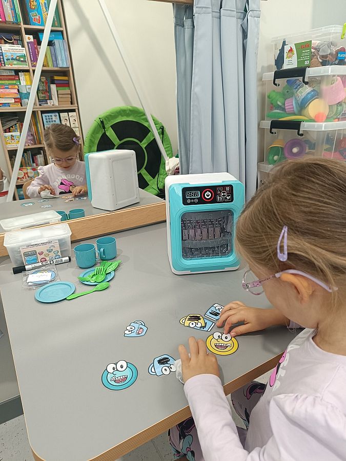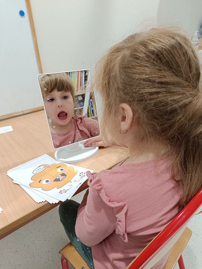 Terapię logopedyczną z dziećmi posiadającymi Orzeczenie o Potrzebie Kształcenia Specjalnego w naszym Przedszkolu prowadzi logopeda, specjalista wczesnej interwencji logopedycznej i terapeuta SI Pani Sandra Radomska .Zajęcia terapeutyczne urozmaicamy dzieciom poprzez innowacyjny program „Logopedii na huśtawce”. Bazując na połączeniu i wpływie zaburzeń integracji sensorycznej na mowę dzieci wyposażyliśmy gabinet logopedyczny w sprzęt podwieszany wykorzystywany standardowo w terapii SI oraz inne przedmioty pozwalające na wielozmysłowe uczenie się mowy. Zakres terapii uwzględnia rodzaj zaburzenia, wiek dziecka, ogólny poziom jego rozwoju oraz czynniki współwystępujące jednak zawsze staramy się, aby zakres ten był szeroki, a ćwiczenia różnorodne, urozmaicone i wielokierunkowe.